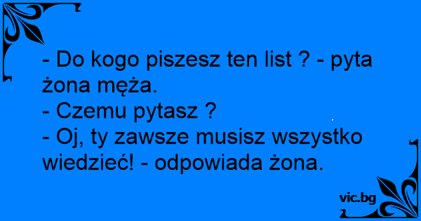- Oj, ty zawsze musisz wszystko wiedzieć! - odpowiada żona.