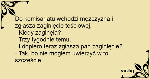 Do komisariatu wchodzi mężczyzna i zgłasza zaginięcie teściowej.