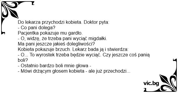 Do lekarza przychodzi kobieta. Doktor pyta:
