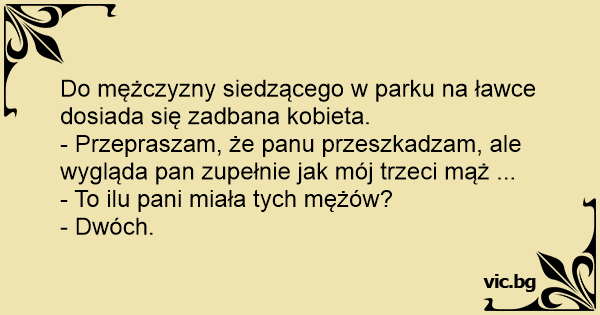 - Przepraszam, że panu przeszkadzam, ale wygląda pan zupełnie jak mój trzeci mąż ...
