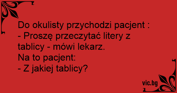 - Proszę przeczytać litery z tablicy - mówi lekarz.