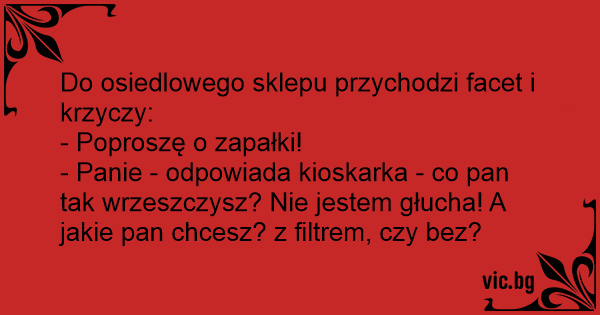 - Panie - odpowiada kioskarka - co pan tak wrzeszczysz? Nie jestem głucha! A jakie pan chcesz? z filtrem, czy bez?
