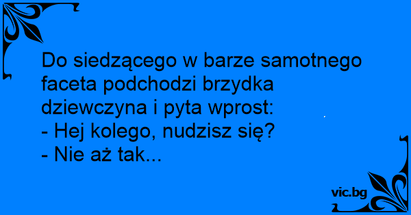Do siedzącego w barze samotnego faceta podchodzi brzydka dziewczyna i pyta wprost: