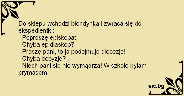 Do sklepu wchodzi blondynka i zwraca się do ekspedientki: