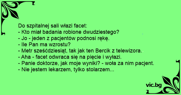 Во болница: - Колку си висок ? - 180 сантими докторе. - А бе не сум доктор, гробар сум...