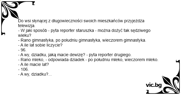 - W jaki sposób - pyta reporter staruszka - można dożyć tak sędziwego wieku?