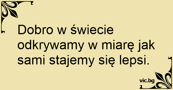 Dobro w świecie odkrywamy w miarę jak sami stajemy się lepsi.