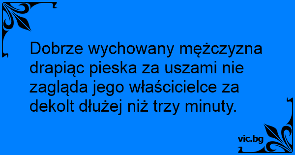 Dobrze wychowany mężczyzna drapiąc pieska za uszami nie zagląda jego właścicielce za dekolt dłużej niż trzy minuty.
