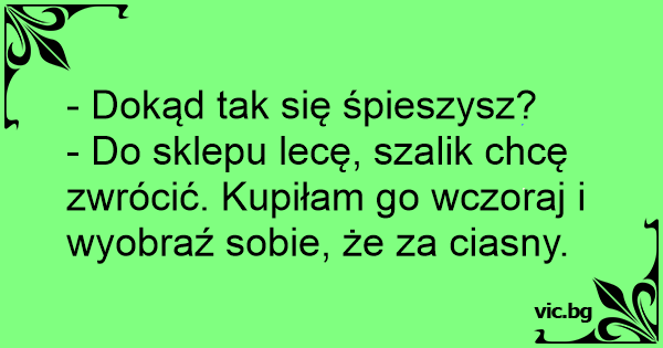 - Do sklepu lecę, szalik chcę zwrócić. Kupiłam go wczoraj i wyobraź sobie, że za ciasny.
