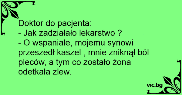 - O wspaniale, mojemu synowi przeszedł kaszel , mnie zniknął ból pleców, a tym co zostało żona odetkała zlew.