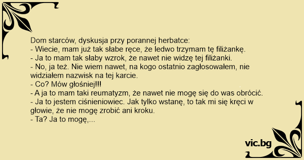 - A ja to mam taki reumatyzm, że nawet nie mogę się do was obrócić.