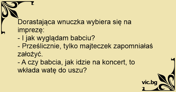 - A czy babcia, jak idzie na koncert, to wkłada watę do uszu?