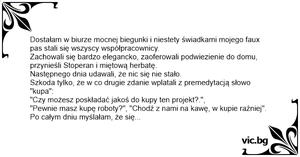 "Pewnie masz kupę roboty?", "Chodź z nami na kawę, w kupie raźniej".