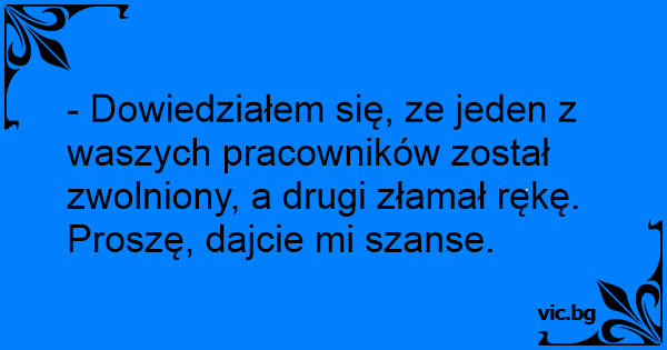 - Dowiedziałem się, ze jeden z waszych pracowników został zwolniony, a drugi złamał rękę. Proszę, dajcie mi szanse.