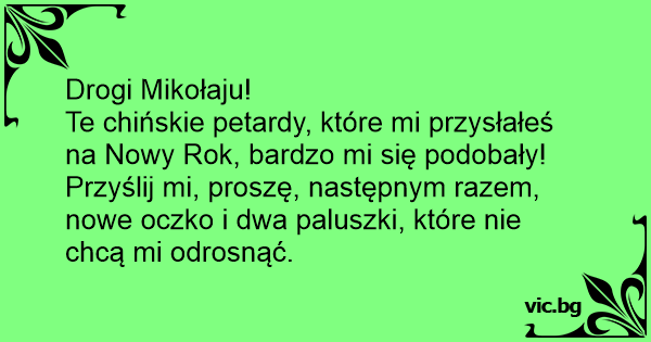Przyślij mi, proszę, następnym razem, nowe oczko i dwa paluszki, które nie chcą mi odrosnąć.
