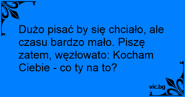 Dużo pisać by się chciało, ale czasu bardzo mało. Piszę zatem, węzłowato: Kocham Ciebie - co ty na to?