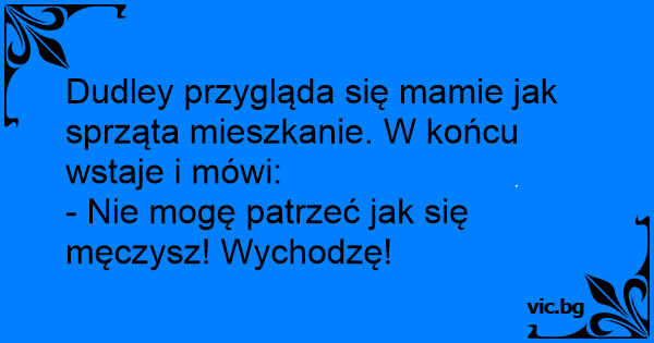 Dudley przygląda się mamie jak sprząta mieszkanie. W końcu wstaje i mówi: