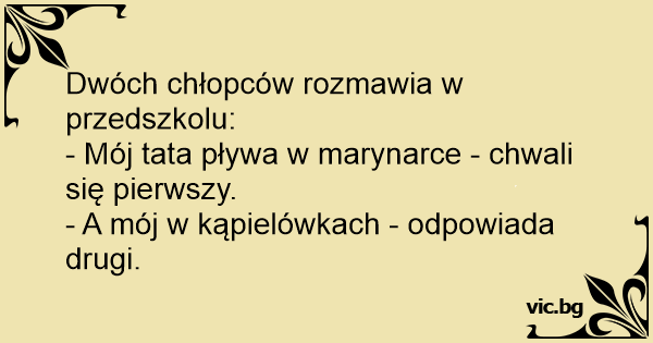 - Mój tata pływa w marynarce - chwali się pierwszy.