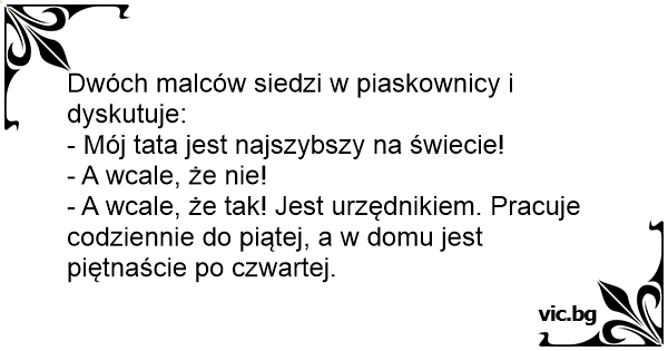 - A wcale, że tak! Jest urzędnikiem. Pracuje codziennie do piątej, a w domu jest piętnaście po czwartej.