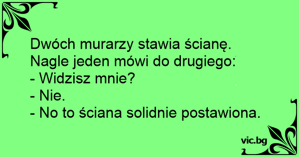 Dwóch murarzy stawia ścianę. Nagle jeden mówi do drugiego:
