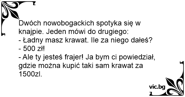 - Ale ty jesteś frajer! Ja bym ci powiedział, gdzie można kupić taki sam krawat za 1500zl.