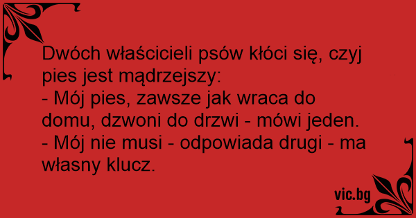 - Mój pies, zawsze jak wraca do domu, dzwoni do drzwi - mówi jeden.