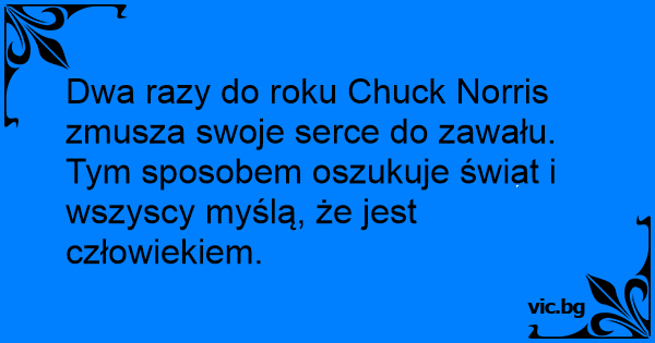 Dwa razy do roku Chuck Norris zmusza swoje serce do zawału. Tym sposobem oszukuje świat i wszyscy myślą, że jest człowiekiem.