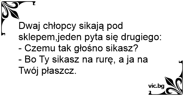Dwaj chłopcy sikają pod sklepem,jeden pyta się drugiego: