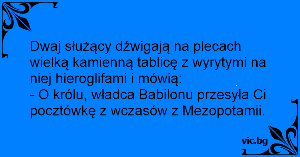 - O królu, władca Babilonu przesyła Ci pocztówkę z wczasów z Mezopotamii.