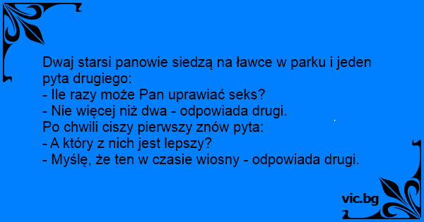Dwaj starsi panowie siedzą na ławce w parku i jeden pyta drugiego:
