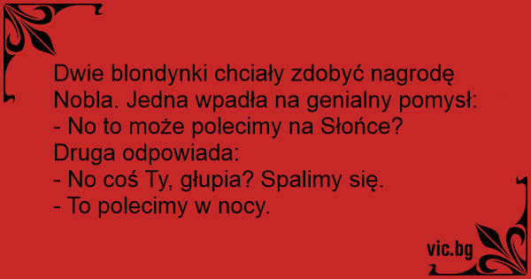 Det var två blondiner som satt och byggde på en rymdraket i skolan. Då kom deras fröken fram och frågade: - Vad ska ni göra med den där? - Vi ska åka till solen, sa den ena blondinen. - Inte kan...