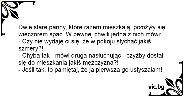 Dwie stare panny, które razem mieszkają, położyły się wieczorem spać. W pewnej chwili jedna z nich mówi:
