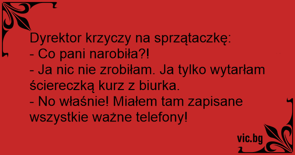- Ja nic nie zrobiłam. Ja tylko wytarłam ściereczką kurz z biurka.