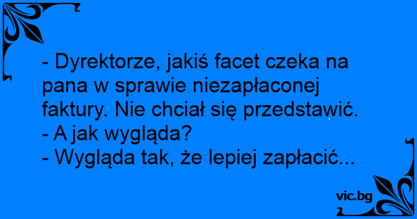 - Dyrektorze, jakiś facet czeka na pana w sprawie niezapłaconej faktury. Nie chciał się przedstawić.