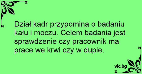 Dział kadr przypomina o badaniu kału i moczu. Celem badania jest sprawdzenie czy pracownik ma prace we krwi czy w dupie.
