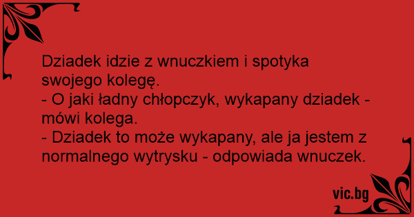 - Dziadek to może wykapany, ale ja jestem z normalnego wytrysku - odpowiada wnuczek.
