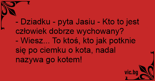 - Dziadku - pyta Jasiu - Kto to jest człowiek dobrze wychowany?