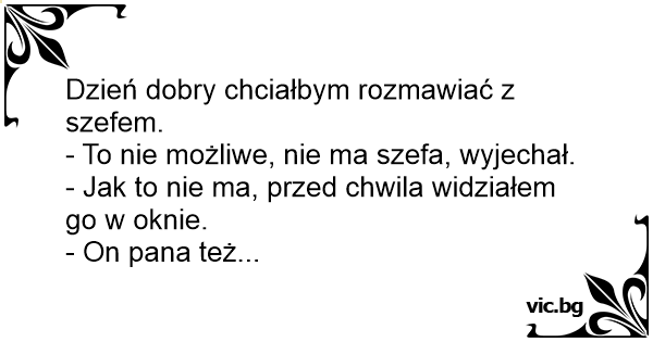 - To nie możliwe, nie ma szefa, wyjechał.