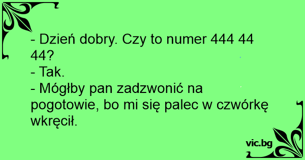 - Mógłby pan zadzwonić na pogotowie, bo mi się palec w czwórkę wkręcił.