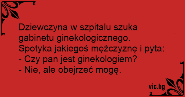 Dziewczyna w szpitalu szuka gabinetu ginekologicznego. Spotyka jakiegoś mężczyznę i pyta: