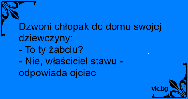 W mieszkaniu dzwoni telefon. Kowalski, ojciec trzech dorastających córek podnosi telefon. - Halo, czy to ty żabciu? - słyszy w słuchawce ciepły baryton. - Nie, przy telefonie właściciel stawu.