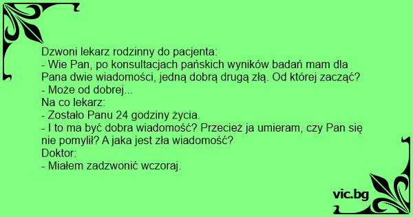 - I to ma być dobra wiadomość? Przecież ja umieram, czy Pan się nie pomylił? A jaka jest zła wiadomość?