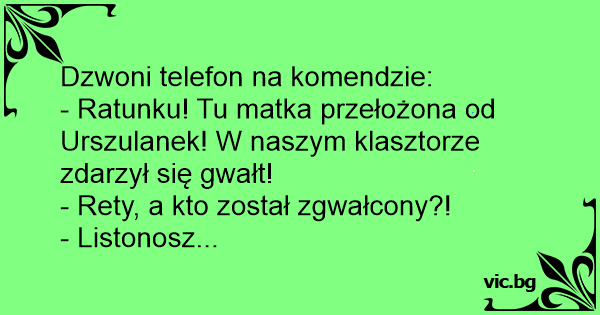 - Ratunku! Tu matka przełożona od Urszulanek! W naszym klasztorze zdarzył się gwałt!