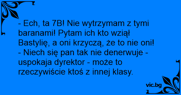 - Ech, ta 7B! Nie wytrzymam z tymi baranami! Pytam ich kto wziął Bastylię, a oni krzyczą, że to nie oni!