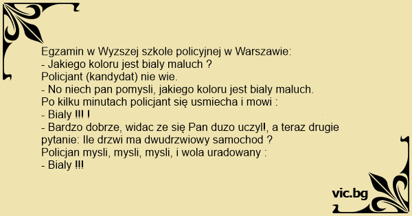 - No niech pan pomysli, jakiego koloru jest bialy maluch.