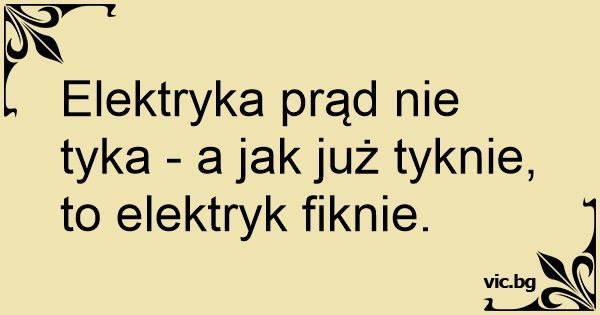 Elektryka prąd nie tyka - a jak już tyknie, to elektryk fiknie.