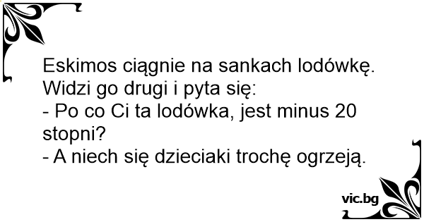 Eskimos ciągnie na sankach lodówkę. Widzi go drugi i pyta się: