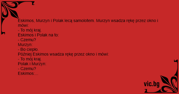 Бай Ганьо, американецът и французинът пътували със самолет. Американецът си подал ръката от самолета и казал: - В Америка сме. - Как разбра? - попитали другите. - Напипах статуята на свободата. След малко и французинът си подал ръката и казал: - Във Франция сме. - Как разбра? - Напипах...