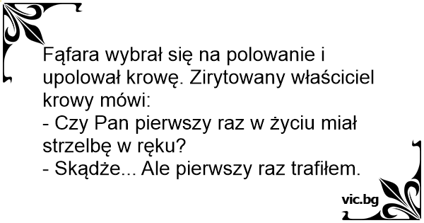 Fąfara wybrał się na polowanie i upolował krowę. Zirytowany właściciel krowy mówi: