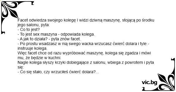 Więc facet chce od razu wypróbować maszynę, kolega się zgadza i mówi mu, że będzie w kuchni.
